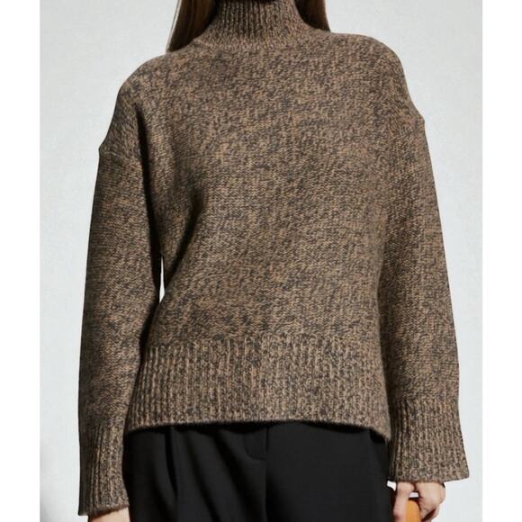 Thoery Karenia Cashmere Brown Speckled Quiet Luxury Knit Turtleneck Sweater S