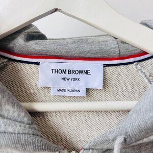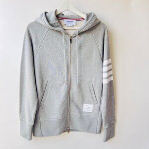 Thom Browne Classic 4-Bar Zip Cotton Hoodie, gray/white, Size 3 D41