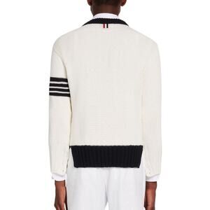 Thom Browne Cotton Jersey Pocket 4-Bar Stripe Crew Neck Sweater White Size S