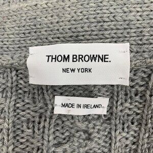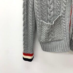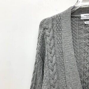 Thom Browne Gray Striped Cable Knit Wool V-Neck Single-Breasted Long Sleeve Cardigan (J17039) - Size M (2) - 99% New
