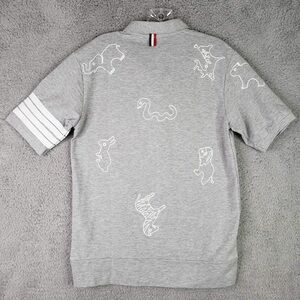 Thom Browne Gray Polo Shirt Embroidered Short Sleeve Size 1 Small
