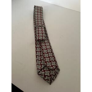 Thom Browne 100% Silk Burgundy & Gray Geometric Pointed Tie — Classic One Size