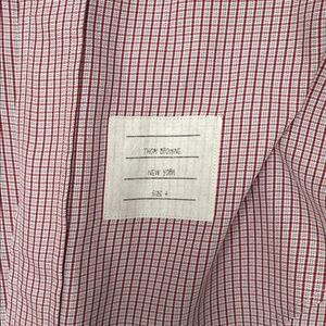Stylish Thom Browne dress shirt with red stripes. Ideal for any occasion.