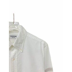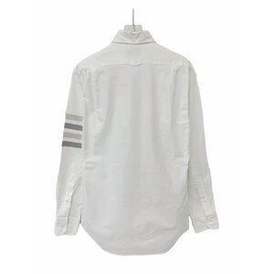 Thom Browne White Classic Four-Bar Stripe Cotton Collar Single-Breasted Long Sle