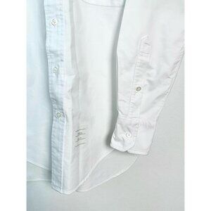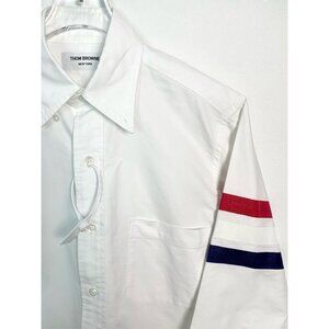 Thom Browne White Long Sleeve Shirt with Tricolor Stripe Notch Collar – Size 1, Item Code 005213