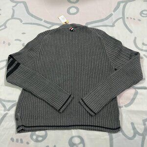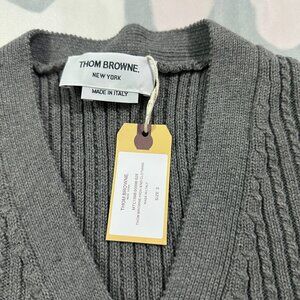 Thom Browne Women's Black Four-Striped Cardigan V-Neck Knitted Grey Jacket