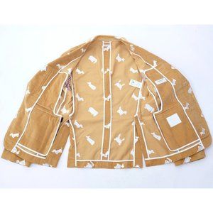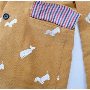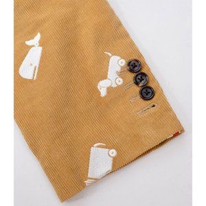 A great new mens Thom Browne suit in corduroy and embroidered all over with the signature Hector dog, whale and crab motifs