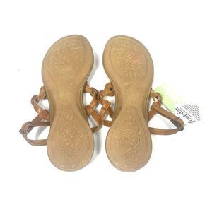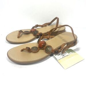 Thom McAn Beaded Brown Leather Sandal Stone Metal Ankle Strap Women Size 7 NWT