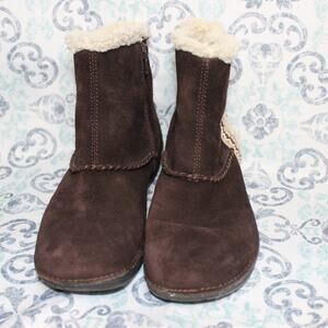 Thom McAn Brown Suede Side Zip Ankle Boots Booties Size 8.5 Contrast Stitching