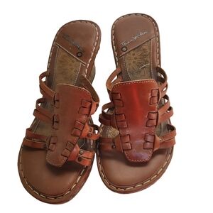 Thom McAn Leather Strappy Espardrille Wedge Slide Sandals Size 8