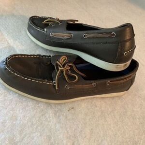 Thom McAn Size 12M Boat Deck Loafer Shoes. Man made material. Good condition, some wear on bottom. See photos.