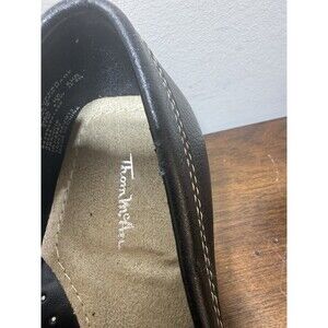 The Thom McAn Women's Francis Black Dress Pump Kitten Heel Shoes in wide width are a comfortable and stylish option for women. Featuring a slip-on closure and a low kitten heel, these black leather shoes are perfect for casual wear. The loafer style and wide width make them a versatile choice for everyday pairing with jeans or a casual outfit. The Thom McAn brand ensures quality and reliability in this classic wardrobe staple. with 2 small flaws shown in pics
