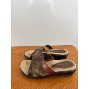 Thom McAn Women’s Leather Open Toe Scandal Brown Size 6.5 W Size 38 Sku 2812