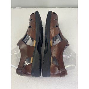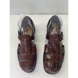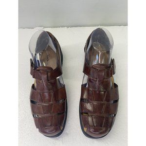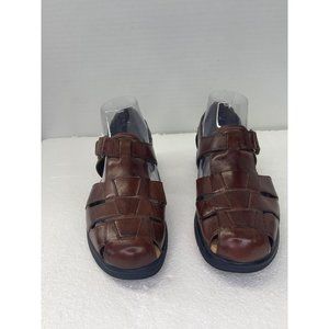 These Thom McAn, size 8 brown sandals are designed for women who value style and comfort. Made from high-quality leather, these closed-toed shoes make a great addition to any wardrobe.