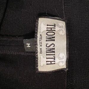 Thom Smith Atelier XXI Black Pant, Stretchy. Wide Leg, Side Zip. Size Medium. Unlined, Slit at the hems. Excellent condition. Great for work business professional classic neutral minimalist. Waist 14.25” across unstretched, rise 12.75”, inseam 27.75”, ankle opening 9” across. Bin10