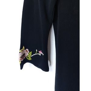 Thom Smith Black Embroidered Floral Long Sleeve V-Neck Acrylic Silk Midi Dress S