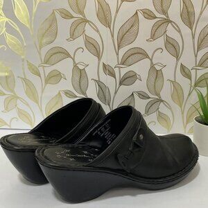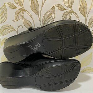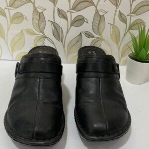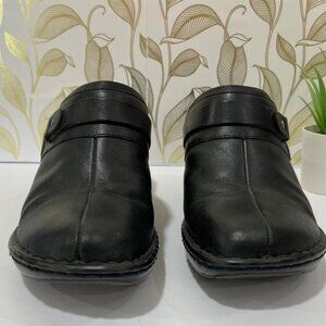 Thom mcAn Womens Black Leather Mule Clogs With Strap Detail 7.5 Comfortable Slip