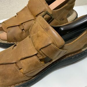 Thom McAn Men’s Size 13 Brown Open Toe Buckle Sandals Upper Leather