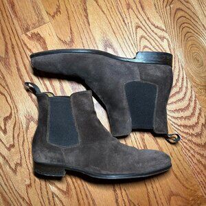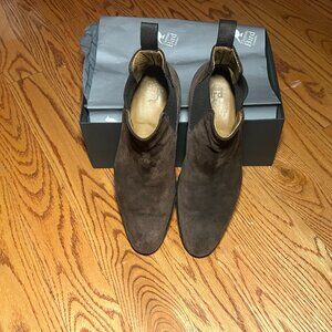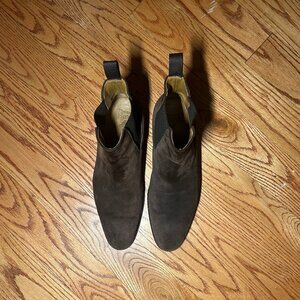 Lightly worn (Less than 10 times) Unlined Thomas Bird Dark Brown Suede Chelsea Boots. The shoe is in perfect condition aside from the sole.