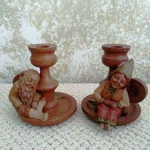 Thomas Clark Gnome Candle Holders Mrs Wink and Wink Too Vintage 1980s