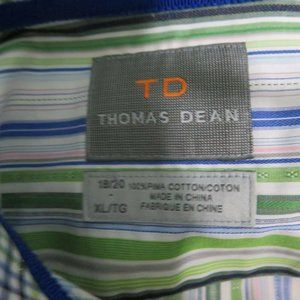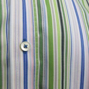 Thomas Dean Blue Green Stripe Flip Cuff Shirt XL