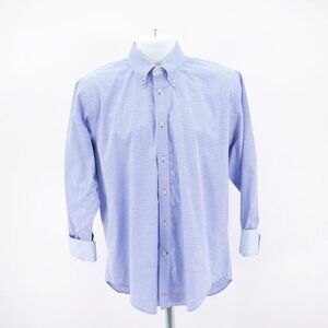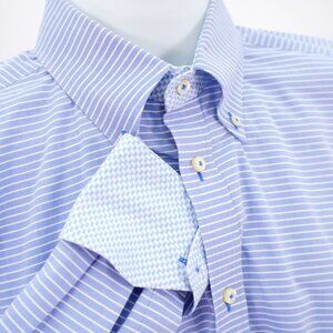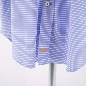 Thomas Dean Blue White Striped Flip Cuff Button Down Medium Pima Cotton