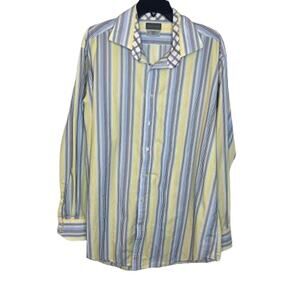 Thomas Dean Button Down Blue & Yellow Striped Shirt, XXL