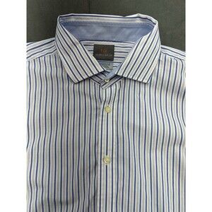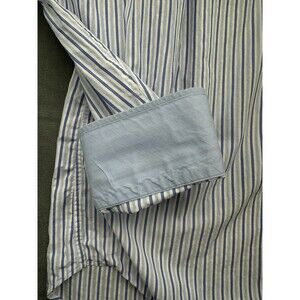 Thomas Dean Button Long Sleeve Striped Dress Shirt Mens XXL Flip Cuff Blue White