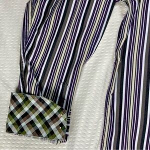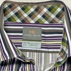 Thomas Dean Dress Shirt Mens Size XXL Tall Striped Long Cuff Sleeve Button Down