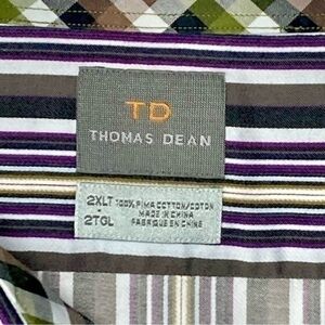 - Description: Thomas Dean Executive Mens 2XLT Stripe Long Sleeve 100% Pima Cotton Dress Shirt