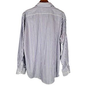Thomas Dean Dress Shirt Size XL White Purple Gray Striped Flip Collar Cuffs TD
