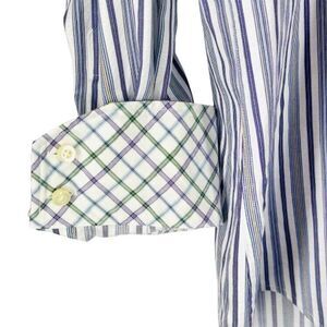 Thomas Dean Dress Shirt Size XL White Purple Grey Stripes Flip Collar Cuffs TD
