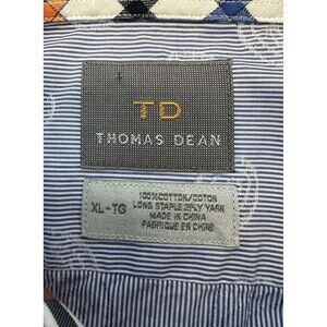 Men's Thomas Dean long sleeve button up shirt, spread collar. Size XL. Blue and white multicolor shirt, striped with paisley pattern. Classic fit. No holes, stains, rips or tears. Pre-owned. Measurements in photos. Smoke free home.