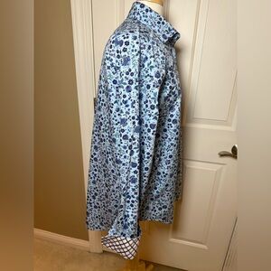 Thomas Dean Floral Blue Men's Shirt w reverse cuffs-Size XL