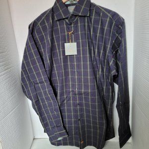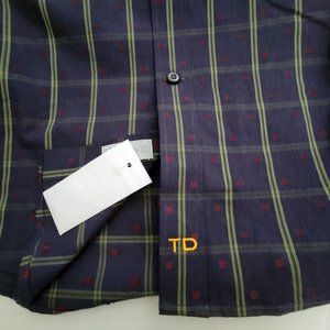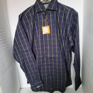 Thomas Dean Green and Blue Plaid Casual Button Down Shirt