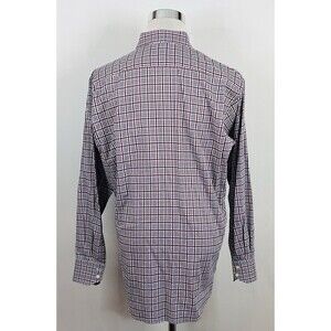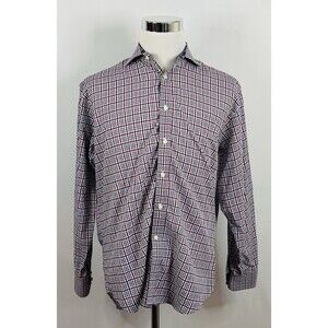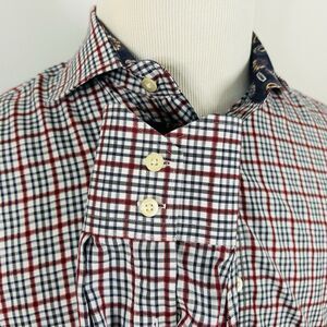 Thomas Dean Large Casual Shirt Paisley Flip Cuffs Red White Blue Plaid Cotton