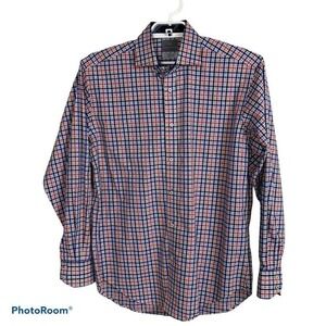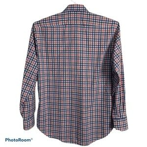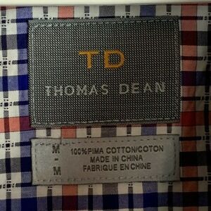 Thomas Dean Men's size M Button Down Long Sleeve Blue Black Plaid Striped Shirt