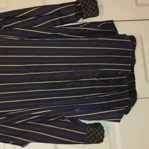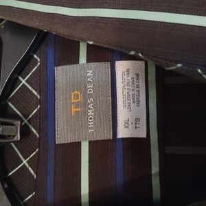 Burton down by Thomas Dean features deep, dark chocolate, purple and white stripes, and awesome contrasting cuffs. EUC; no fraying at collar or cuffs; no stains or signs of wear anywhere.