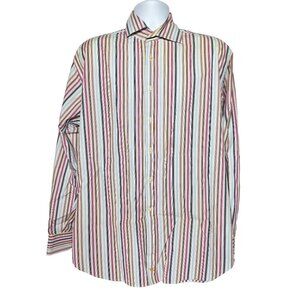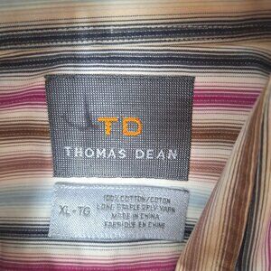 Thomas Dean Men's Button Up Shirt Size XL Multicolor Striped Long Sleeve