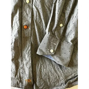 Thomas Dean Mens Dots Cotton Collared Long Sleeve Button Down Shirt Gray Size XL
