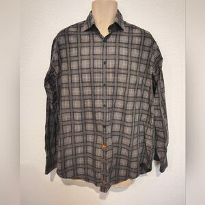 Stylish men's gray plaid shirt, perfect for any occasion. Comfortable and versatile, this is a must-have for your wardrobe. 100% cotton, in pristine condition!