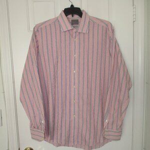 Thomas Dean Mens L/S Red Cotton Dress Shirt - Size 17/36 or XL