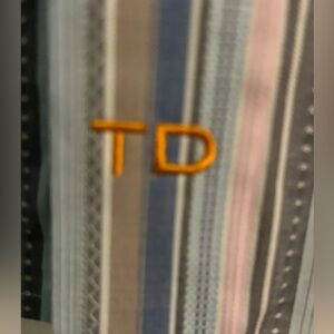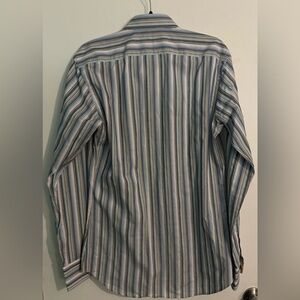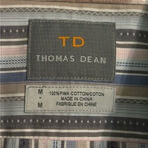 Thomas Dean Mens Med Striped Button down long sleeve plaid accented cuffs cotton