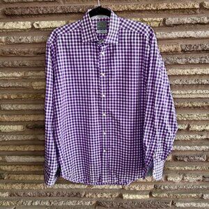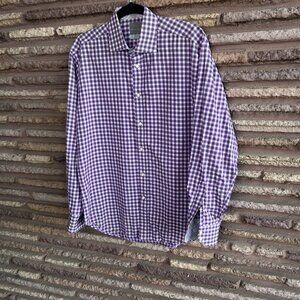 Thomas Dean Men's Purple Op Art Button Front Shirt Flip Cuff Size Medium