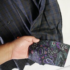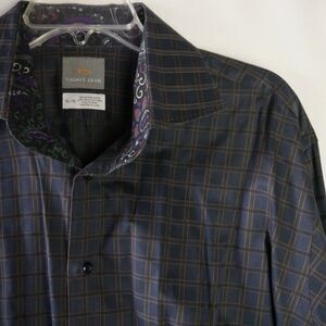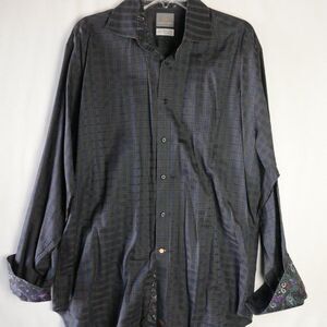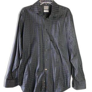 Thomas Dean Mens Size XL-TG Long Sleeve Button Up Navy Shirt Geometric Pattern