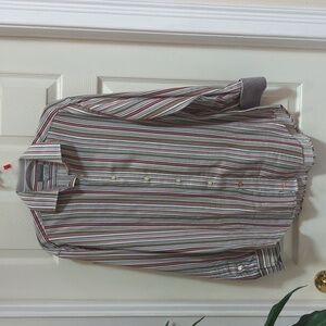 Thomas Dean Men's Striped Long Sleeve Button Down Dress Shirt Size Medium