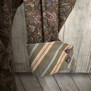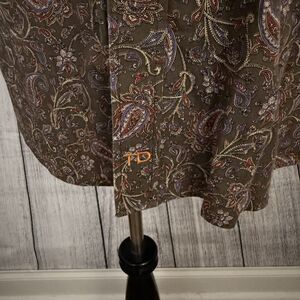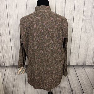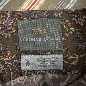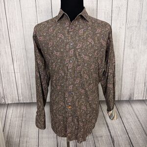Thomas Dean Men's XL Brown Paisley Contrast Cuff Long Sleeve Button-Front Shirt