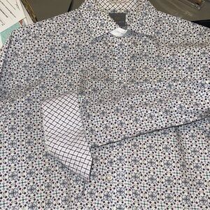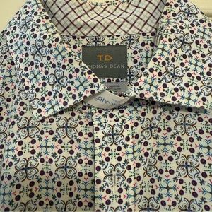 Thomas Dean Men’s XL Button-Down Shirt Geometric Floral Print Long Sleeve