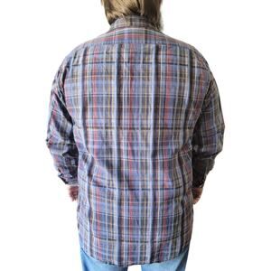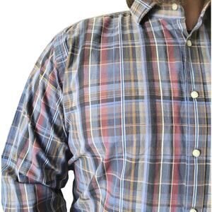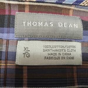 Thomas Dean Mens XL Plaid Cotton Button Down Shirt Preppy Office Casual