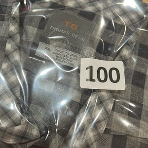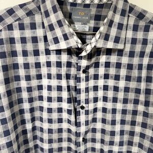 Thomas Dean Men’s XXL TTG Navy Gingham Plaid Dress Shirt Party Shirt Designer